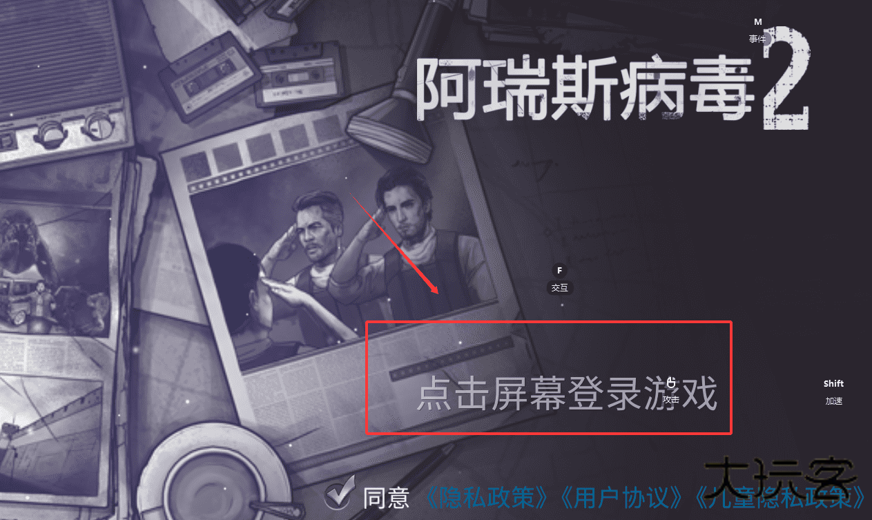 1、首先呢,打开游戏后会出现登录界面,直接点击屏幕中央的“点击屏幕登录游戏”字样就可以了。