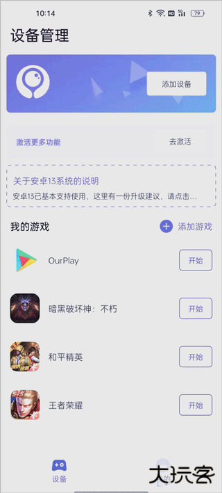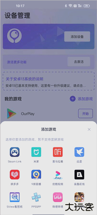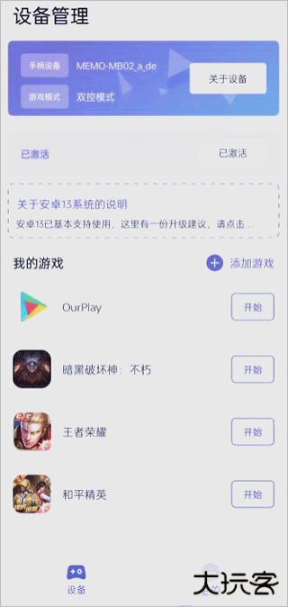 1、找到首页的【添加设备】按钮点击进入,按提示配对好你的外设(蓝牙手柄 / 键鼠等);