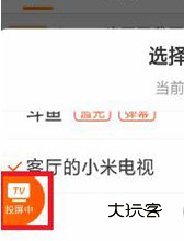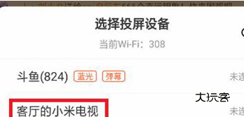 3、当我们点击该功能后,我们的屏幕下方则会出现相应的可投屏设备,我们现在需要找到我们的电视设备名称,并点击。