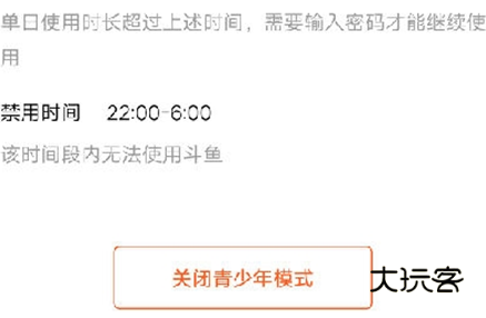 2、该模式将会限制青少年只能每天使用斗鱼APP40分钟,而且在22点到6点之间是无法正常使用的,如果我们想要进行关闭,就需要点击屏幕下方的“关闭青少年模式”按钮。