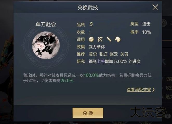 兑换按钮可以帮助玩家消耗当前武将获取相应武技;