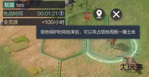 而过了免战期后的地块周围都将视作可供占领的范围,并且不受初始占地范围的限制!大家可以利用这个机制朝资源丰富的地区发展,或者和战略地块接壤等多样玩法。