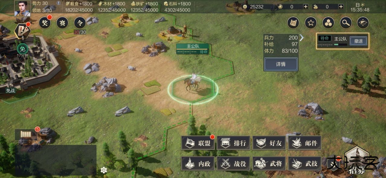 完成新手引导和任务后,就是发展和扩张,趁着新手保护期多占地,多积累资源,一边熟悉游戏玩法一边寻找加入合适的同盟。