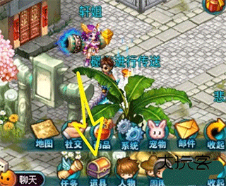 1、然后在下方标签栏中,我们可以找到一个道具的标签。