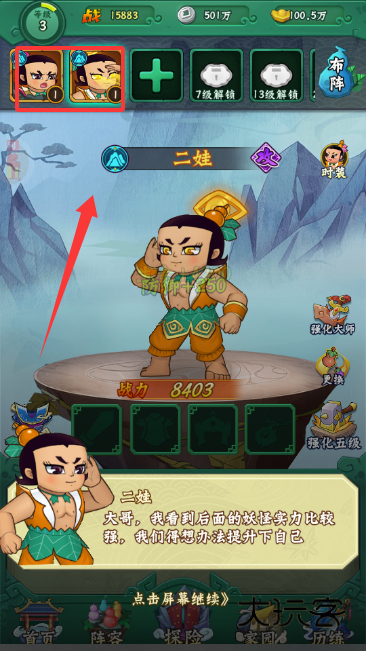 众所周知,葫芦娃在动画片中拥有惊人天赋,如今还原到游戏,炫酷技能同样层出不穷。玩家可以利用每一个葫芦娃的技能以及属性特长自主DIY阵容,比如使用六娃的隐身能力直接潜入敌方内部击杀后排输出,还有使用五娃的水属性治疗技能作为“奶妈”为全队续航等等。