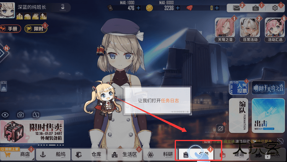 第三:刚开始任务什么的送的一些红尖尖不要买等级礼包、魔方、石油和物资,血亏给的红尖尖优先开后宅二楼位子和船坞。石油的话前中期很缺,开局捞船可以零破练到满级再破,前面图没什么难度,等级碾压足矣(当然咸鱼玩家可以随便破甚至挂1200油的委托,根据情况自己决定)后期多的溢出。商店的箱子打折打的多就买,不打折考虑考虑再说,虽然装备靠箱子来的快,但前期物资也是稀缺货,谨慎使用吧。