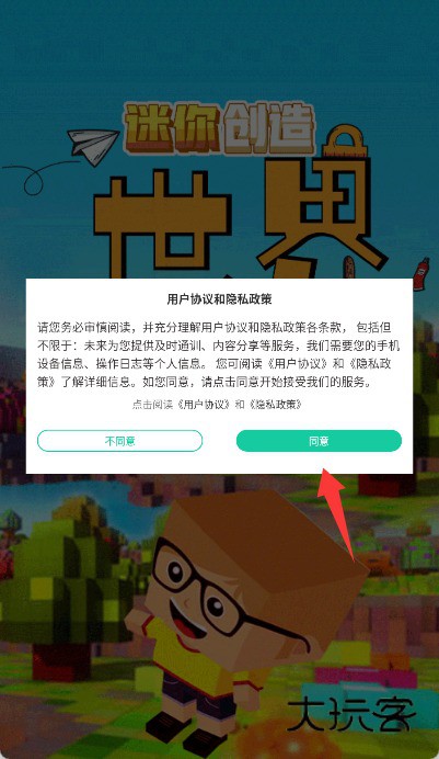 1、启动游戏后,请先仔细阅读并勾选同意用户协议与隐私政策,完成初始设置。