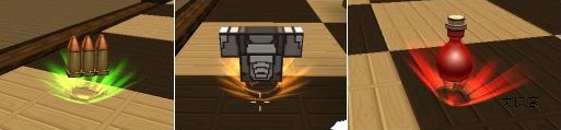 游戏内散落着各种补给,玩家经过补给即可拾取,拾取补给可恢复对应的属性(子弹、护甲、血量)如下图