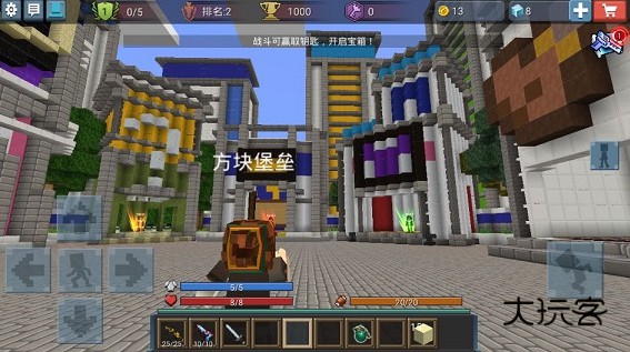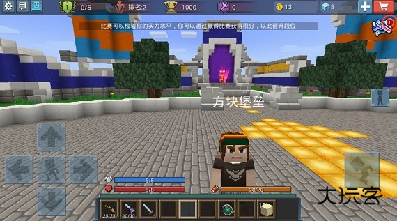 主要玩法:开局小岛上的箱子可以获取幸运方块,击碎幸运方块会掉落装备和道具,利用石头方块搭建通道接近对手并击败他们!