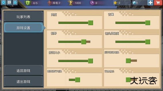 可修改游戏相关设置(如音乐、视野范围、按钮大小等)