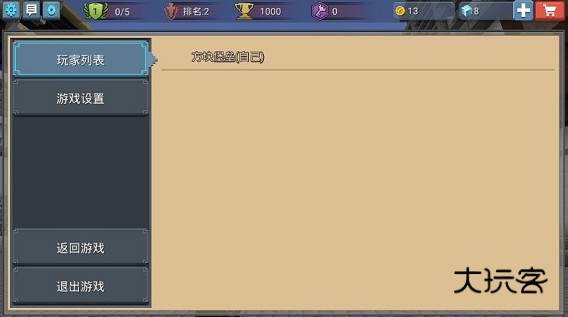 1、从左到右三个按钮分别为、系统设置,聊天功能,视角切换功能。点击系统设置可打开系统设置界面,在此界面玩家可查看当前房间内的玩家列表,