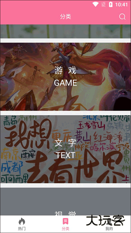 小编以游戏分类为例,大家可以看见很多精美的游戏角色的图片。