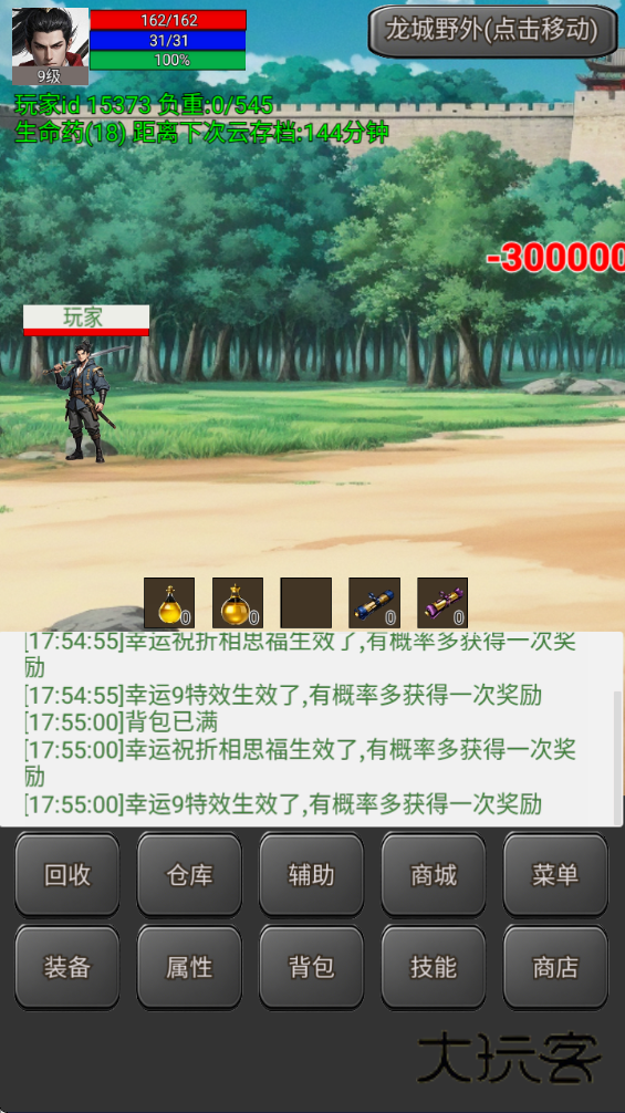 boss:狼王, 掉落 生命药水(越级挑战必备物品)和一刹之剑(5%概率),一刹之剑是9级突破10级的必备物品