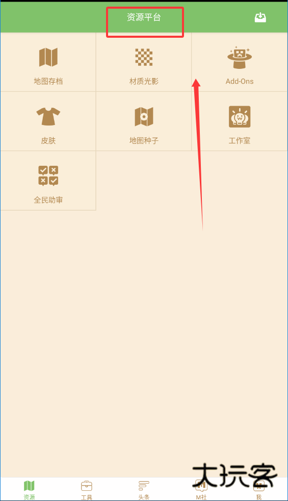 1 、进入应用后首先看到的是布局合理的功能界面,顶部以绿色条带突出显示应用名称,下部将地图种子、资源等常用功能以直观的图标阵列形式呈现,确保重要操作能快速启动。