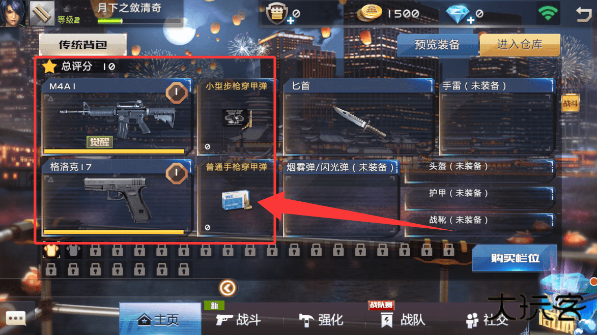3、通过基础任务提升角色等级,并进入传统背包界面管理初始装备。依据武器属性如穿甲弹类型配置主副武器,同时留意未装备的战术道具与防具栏位,为后续战斗做好物资准备。