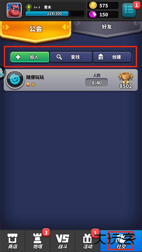 9、进入【社交界面】,玩家在这里可以加入、查找和创建工会,还可以在这里进行添加好友,以上就是僵尸风暴的玩法了。