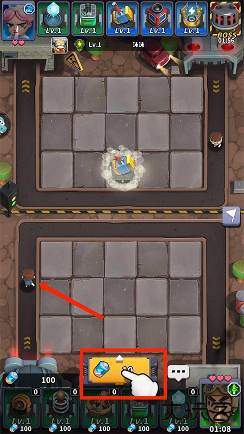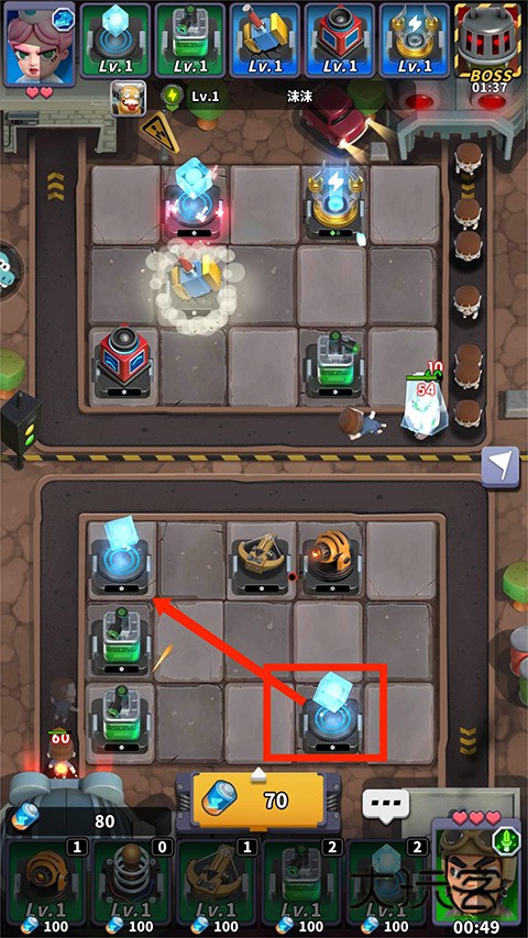 6、将两个相同类型的炮塔进行拖动合成,可以升级成更厉害的炮塔,拥有更高的伤害和更快的射速,从而更快的将僵尸消灭,