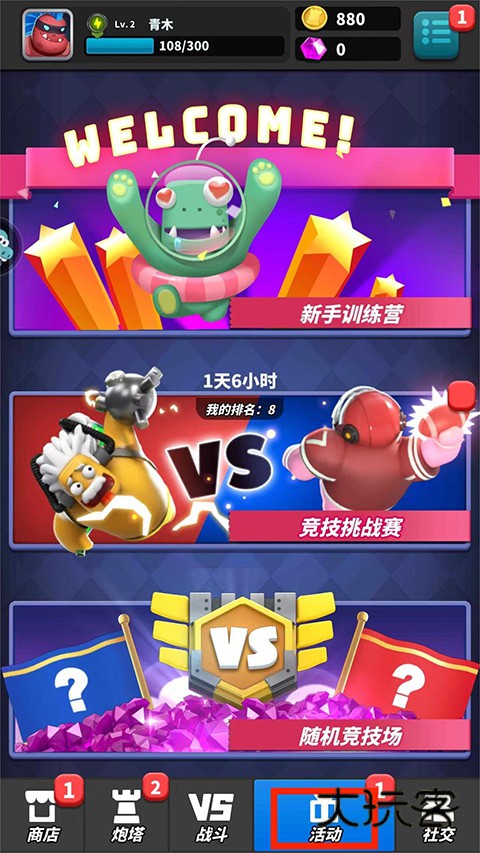 8、进入【活动界面】,包括“新手训练营”、“竞技挑战赛”、“随机竞技场”等不同的活动可以选择参加,