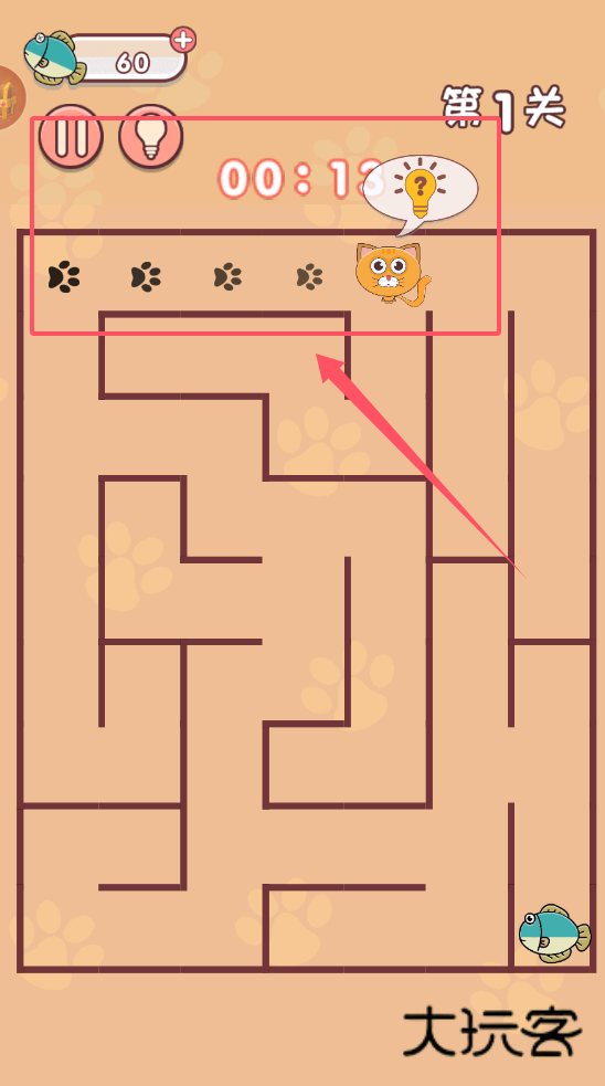 迷宫闯关达人寻找到猫咪最喜欢的小鱼干就可以通过游戏了,这款游戏的画风真的很可爱,你要帮助猫咪寻找小鱼干,