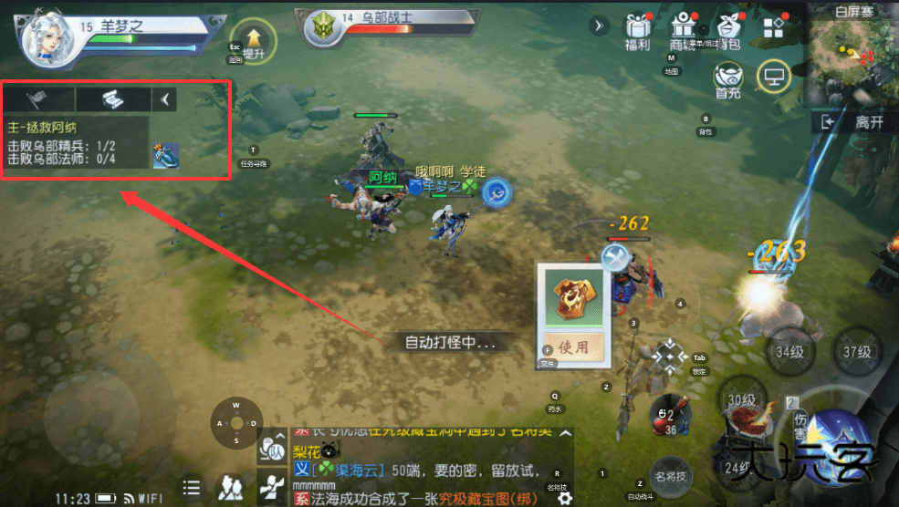 2、点击任务描述或使用“自动打怪中”功能,角色就会自动寻路并战斗,这样可以轻松完成任务获取经验呢。