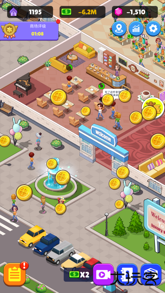 超级商业街是一款引人入胜的商业模拟经营游戏,在这款游戏中,你将有机会从零开始,亲手打造一座独一无二的商业帝国,你可以选择不同类型的店铺,比如时尚精品店、美食餐厅、娱乐场所,甚至电影院和游乐园,你需要巧妙地布局这些店铺,确保它们能够吸引更多的顾客,并最大化你的收益。
