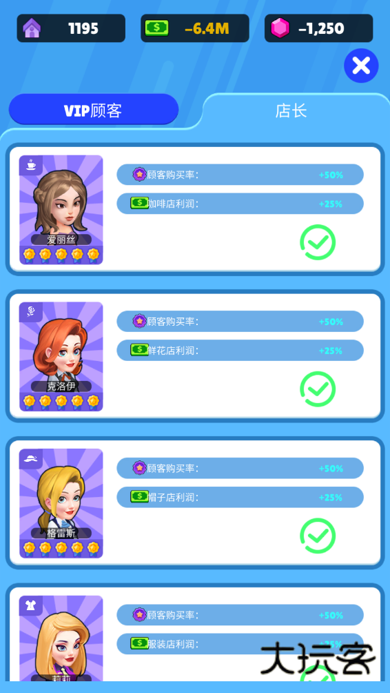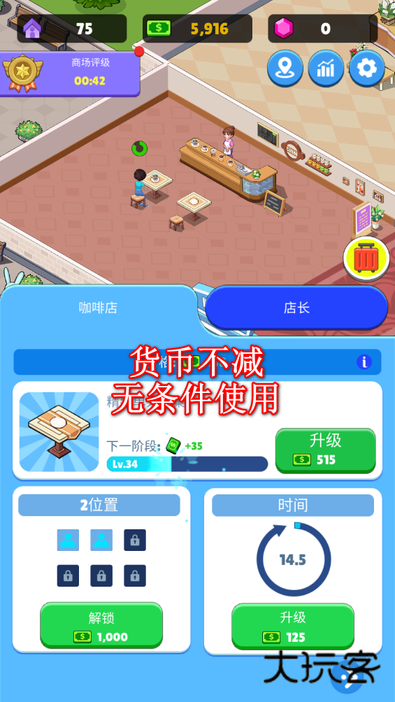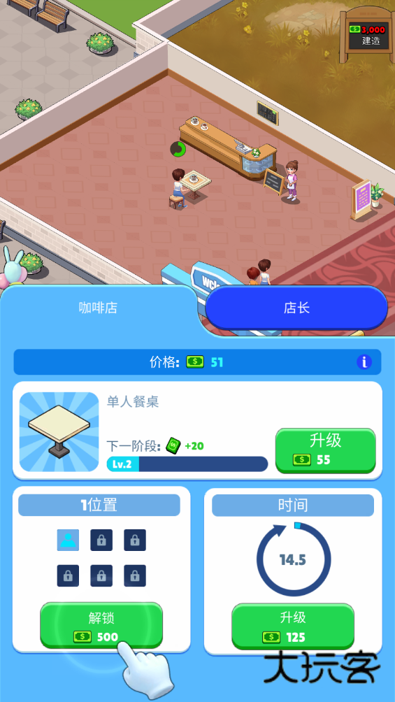 4.随着业务的成功,你的商业版图将不断扩大。游戏鼓励你扩展营业规模,开设更多新店,探索不同的商业领域。每一次成功的扩张都将大幅提升你的收益值,让你离商业巨头的目标更近一步。