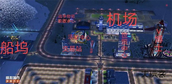 机场(12万人口+8万金币)功能是运输一次获取一件特殊材料,具体是用来升级特殊房屋的。