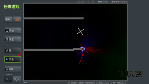 1、通过拖拽、涂抹、倾倒等操作在场景中放置各类元素,观察其自然扩散、相互作用及最终形成的动态系统。