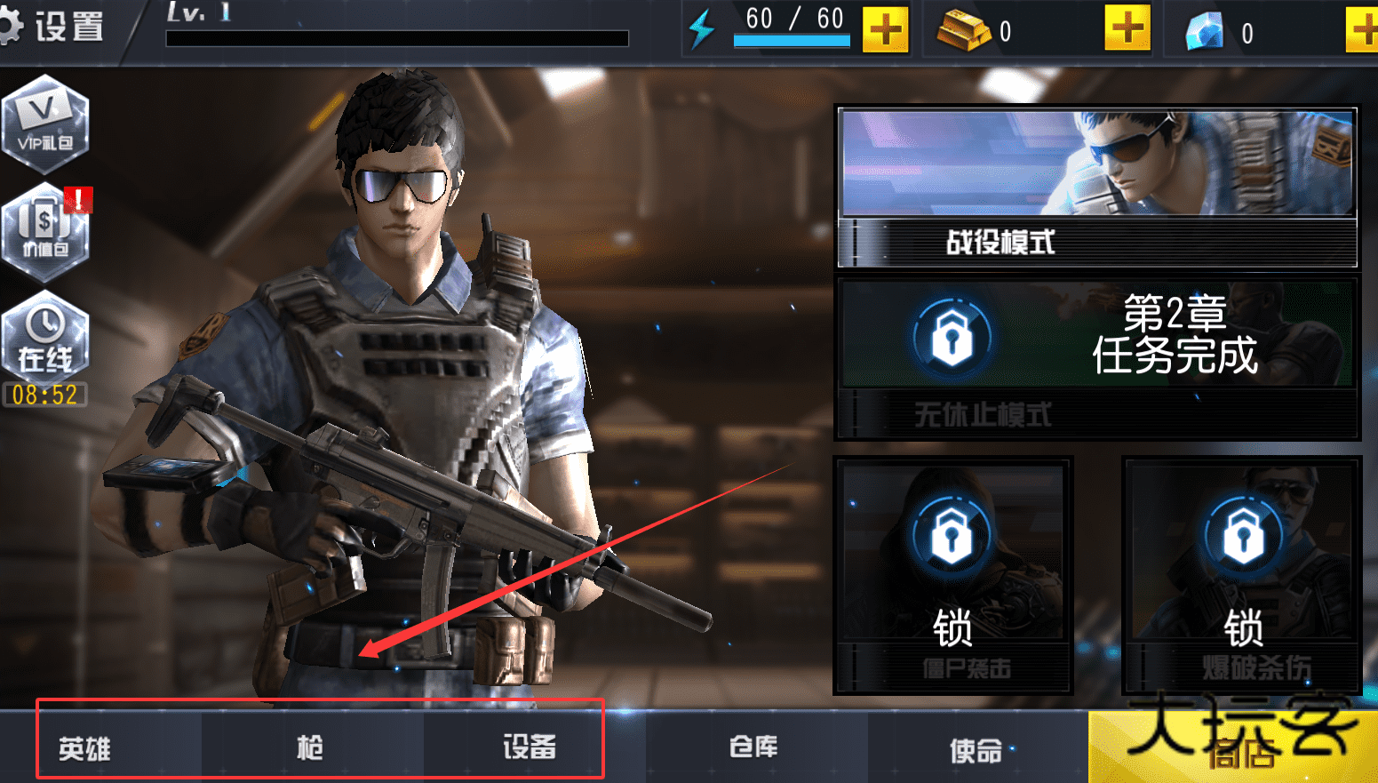 4、综合来看,这款游戏包含角色装备、多种模式与实时战斗要素,你可以通过推进战役解锁内容,在仓库中搭配武器。