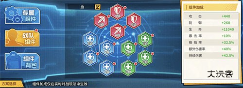 作为9月最新限定角色登场的觉醒龙卷,自然当之无愧的成为该流派的输出C位。依靠自身高额的持续伤害系数,搭配疫苗人即可对敌方造成十分可观的伤害。该阵容的优点是伤害足且不惧对方超绝警犬侠封锁能量,仅仅依靠觉醒龙卷释放绝技便可“坐享”胜利。但缺点也很明显,阵容需要抢先手速度,疫苗人需要超合金黑光、梅鲁扎嘎鲁多、邦古等多位辅助进行保护,且需要高等级的“持续伤害率”红色组件和“额外伤害率”绿色组件来增加输出,为更好地保障疫苗人的生存,蓝色组件推荐搭配“格挡率”和“格挡强度”,在优先选择以上副属性的同时,主属性可混搭攻击、生命值属性。专属组件推荐疫苗人装备【战斗套】、【复苏组件】、【极被动组件】以增加坦度与输出,觉醒龙卷则需要【僧侣套】、【强攻组件】、【迅捷组件】增加速度与攻击力。