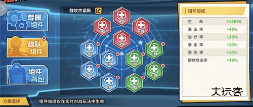 该阵容顾名思义需要两位依靠生命值输出的角色警犬侠、改造杰诺斯组合出场。改造杰诺斯作为目前版本最强的输出角色毋庸置疑,搭配觉醒蚊女、觉醒龙卷、警犬侠可顺理成章的完成收割。选择该流派的玩家,组件主要堆生命值即可,副属性红色组件选择【暴走率】、蓝色组件【暴击率】、绿色组件【群体攻击率】。专属组件改造杰诺斯推荐【战斗套】或【囚犯套】、【复苏组件】、【迅捷组件】,警犬侠推荐【僧侣套】、【极被动组件】或【复苏组件】、【迅捷组件】。推荐拥有较好生命值属性组件的伙伴优先选择该阵容进行上分。