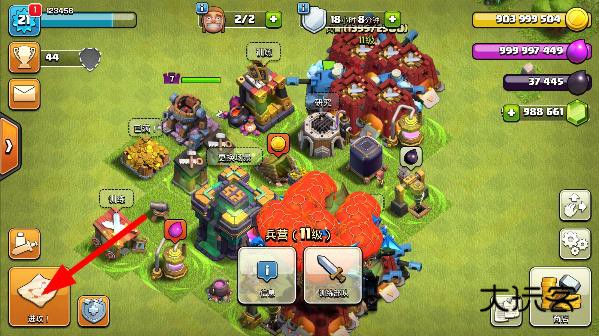 4、造完兵后就可以点击进攻了;