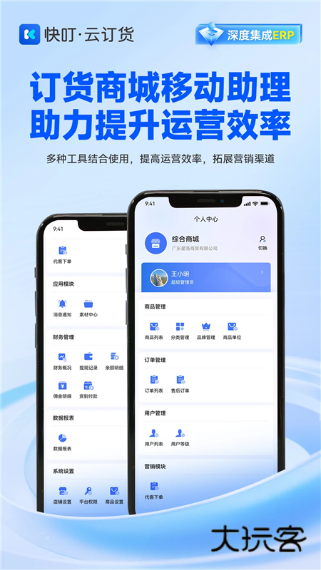 快叮云订货APP是款专门为零售及电商商家打造的后台管理服务软件。它旨在通过提供一站式、便捷高效的云端管理工具,助力商家实现核心业务流程的数字化转型。软件聚焦于三大核心模块:订单管理,处理从下单、发货到售后全流程;库存管理,实时监控库存数量、预警并优化采购;以及数据分析,将运营数据转化为销售、客户、商品等多维度的可视化报表。