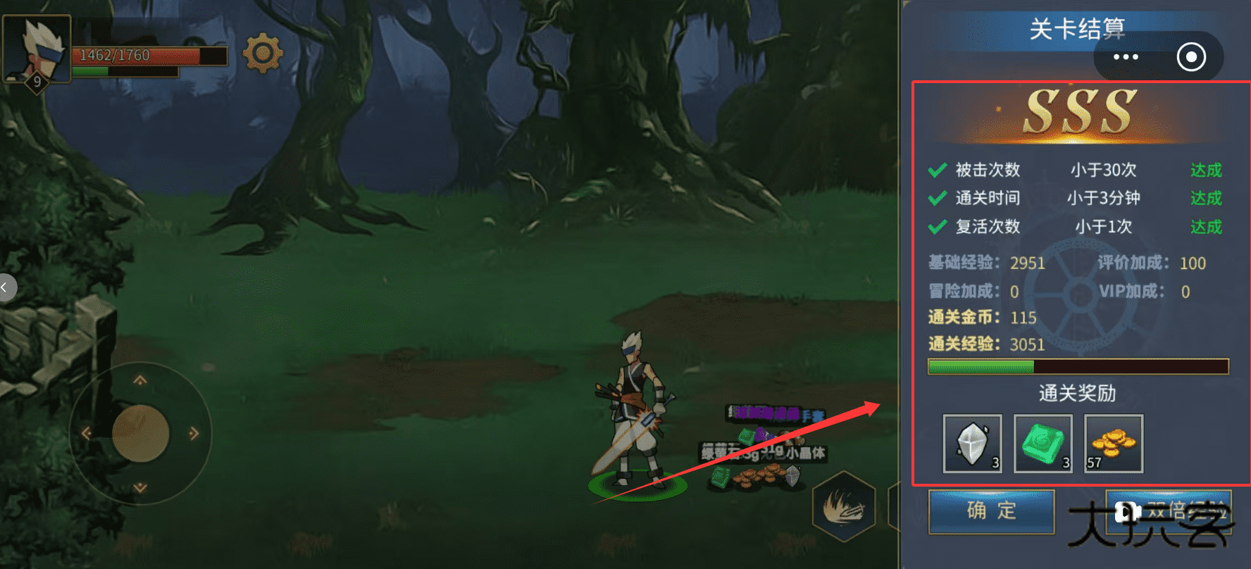 1、拿到高评级后,在结算界面确认基础经验和金币,如果还有双倍经验道具,别忘了勾选使用哦。