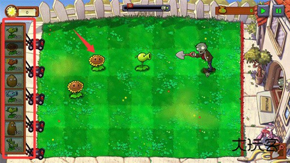 3、进入战场后,通过滑动屏幕将选中的植物拖放到合适的格子位置。合理的阵型布局是抵御僵尸进攻的关键基础。