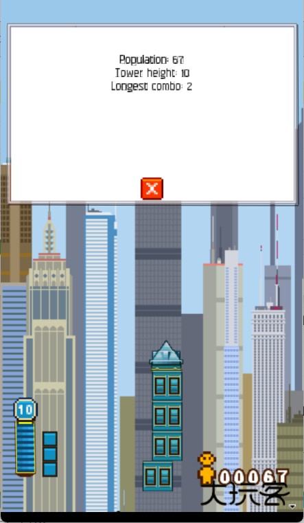 您的目标是建造一座特大都市。要达到此目标,就需要建造摩天楼并将它们放在城市地图中适当的位置。增加城市的人口和提升城市级别可解锁新的摩天楼类型,您可在屏幕上方看到当前城市级别和人口。右上角显示您刚建起的摩天楼的人口以及它将取代的建筑,您建造摩天楼是为了达到目标高度,目标高度显示在屏幕左下方.您的楼顶安放的越好,得到的奖励越多。您有三次机会完成一座摩天楼,若失败了,城市中就会出现一座没有楼顶的摩天楼。一座楼建造完成后,您可以从城市地图中选择一个有闪亮瓦片的位置,按5键放置高楼,可用新摩天楼替换旧的摩。