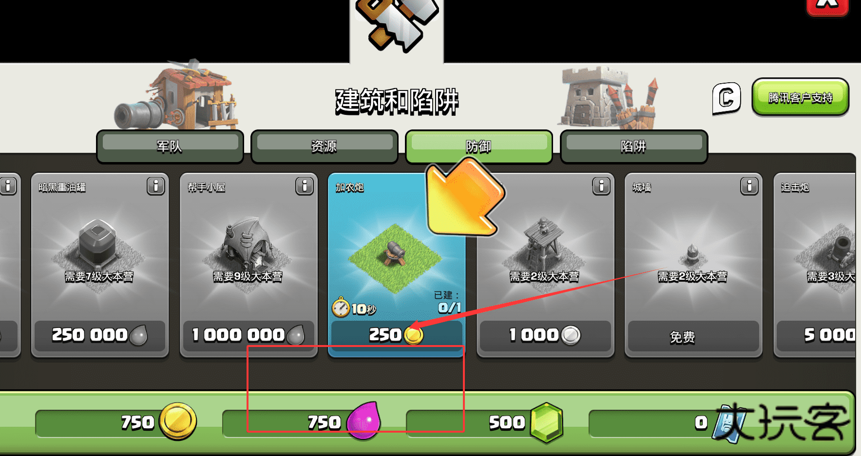 2、如果遇到像加农炮需要10秒这种短时间建造,或者资源已满急需新建储金罐的情况。