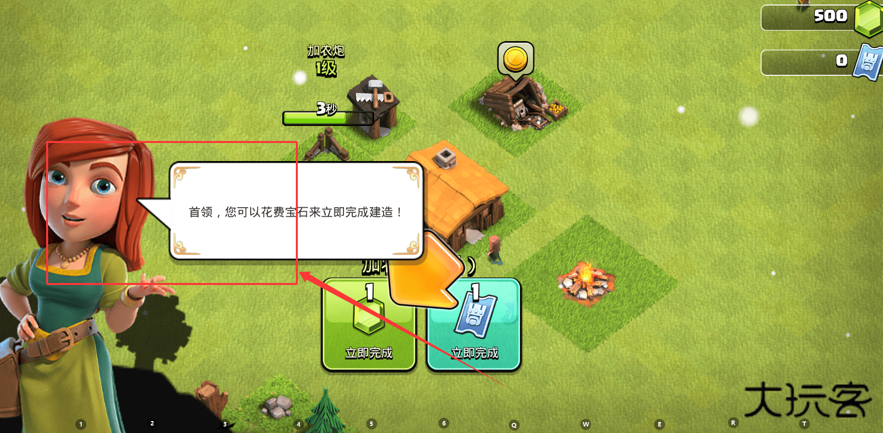 3、当建造或升级的时间较长时,游戏会弹窗提示“立即完成”,这时你可以选择花费宝石来瞬间完成它。