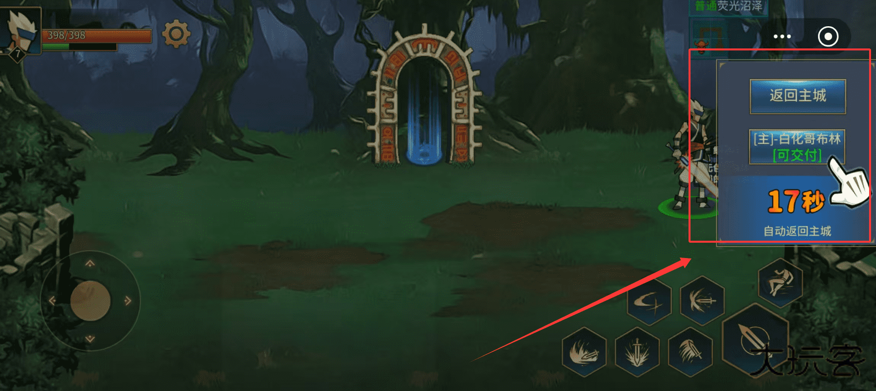 2、你可以稍作等待,也可以手动点击“返回主城”,方便快速交接任务。