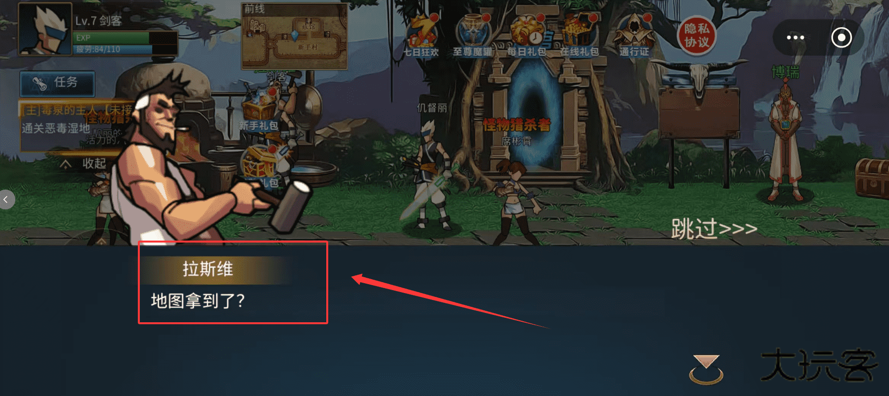 4、例如“博果的主人(天授)”,并跟随指引前往对应地区。如果遇到对话剧情,可以选择“跳过>>>”加速流程,这样能更快推进任务进度呢。