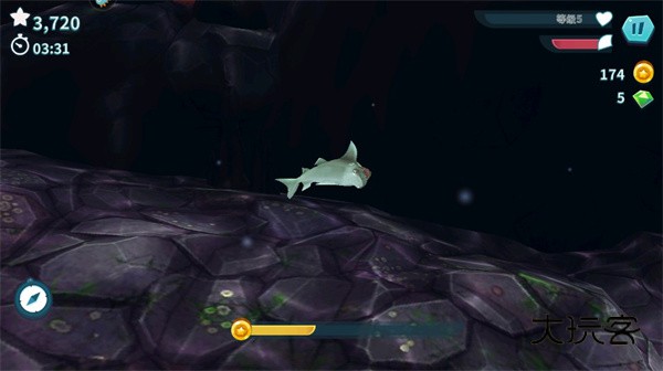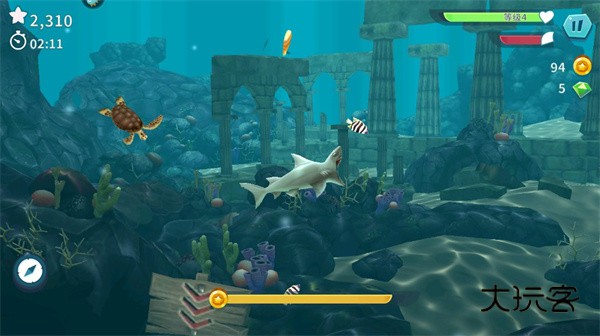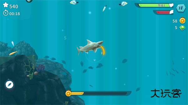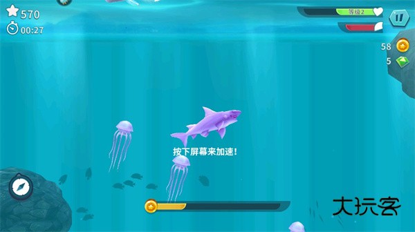 4.按住屏幕可以加速鲨鱼,同时也要注意不要吃到不能吃的东西;