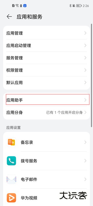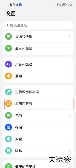 1、首先打开华为手机中的设置,选择打开应用和服务这一选项