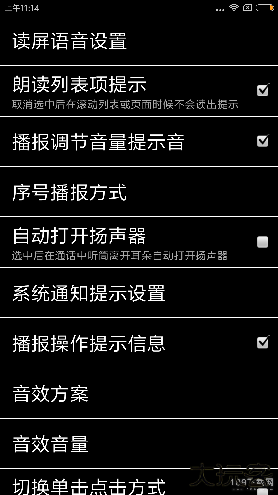软件同时还提供了很多个性化的手势和语音设置,增加了自定义的快捷菜单,内置的tts语音库,应用通知自动播报等功能。