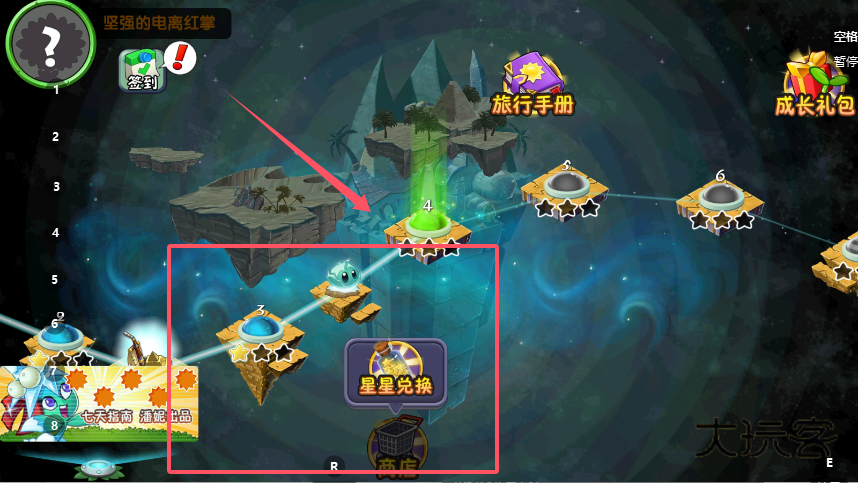 1、进入关卡场景,完成各关卡的挑战来获取星星,关卡节点会展示已获得的星星数量,积累星星后,点击界面中的“星星兑换”入口,进入对应的兑换页面查看可兑换物品。