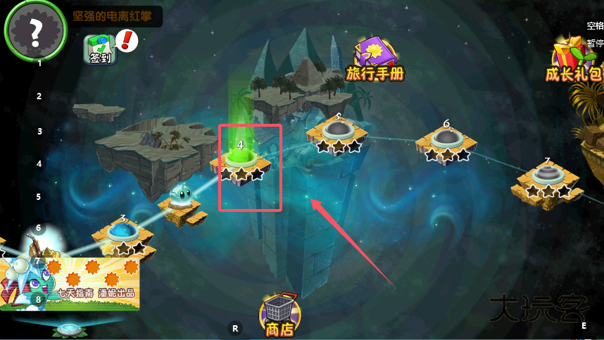 1、进入关卡场景界面,完成对应关卡挑战后可获取星星,场景中各关卡节点会显示已获星星数量,积累星星后点击界面中的“星星兑换”入口,即可进入兑换页面查看可换道具。