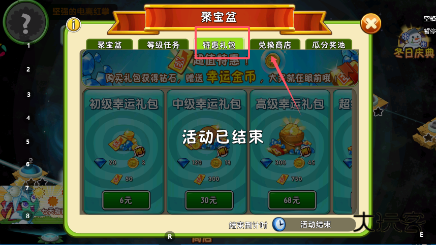 4、通过特惠礼包购买初级、中级等档位的礼包,得到钻石与幸运金币,再到兑换商店用幸运金币兑换植物进阶书、培养液等道具,注意部分道具存在兑换次数限制。
