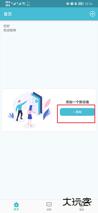 1、打开小鹰看看摄像头官方版,在首页中点击添加