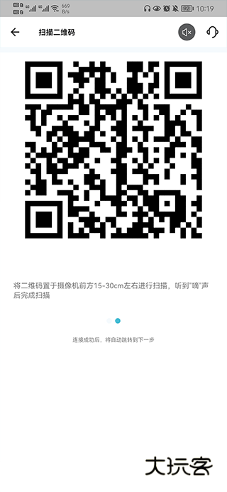 4、将手机连接上WiFi后,会出现一张二维码,将二维码放在摄像头前扫描后即可绑定