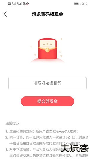 4、在输入框,输入好友的快手极速版邀请码;点击"提交领现金",领取最高56元现金。