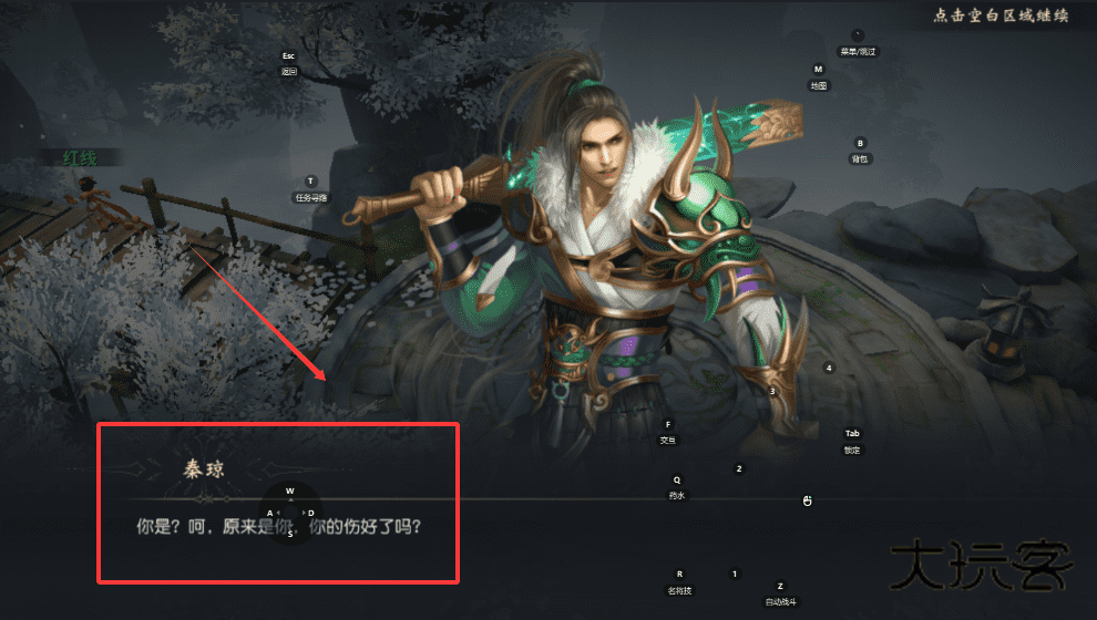 2、很多任务线索和剧情都藏在对话里,他会提到你的伤势,这很可能与后续寻找止血花的任务有关,别急着跳过。